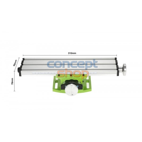 CONCEPT 31090 je kompaktní křížový stůl s plochou 310 x 90 mm. Stůl je určený pro lehké frézování, vrtání a zahlubování neželezných materiálů a měkkých kovů (plasty, dřevo, hliník, měď, slitiny cínu a olova). Frézovací stůl Concept 31090 stůl pro frézu, stůl pro vrtačku